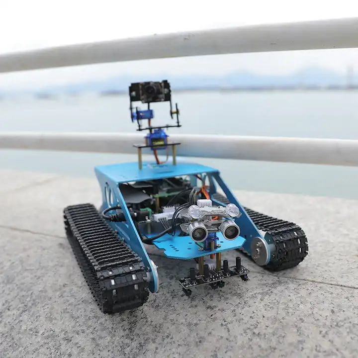 The tank supports multiple AI functions such as face detection, color tracking, object/QR code recognition, etc.